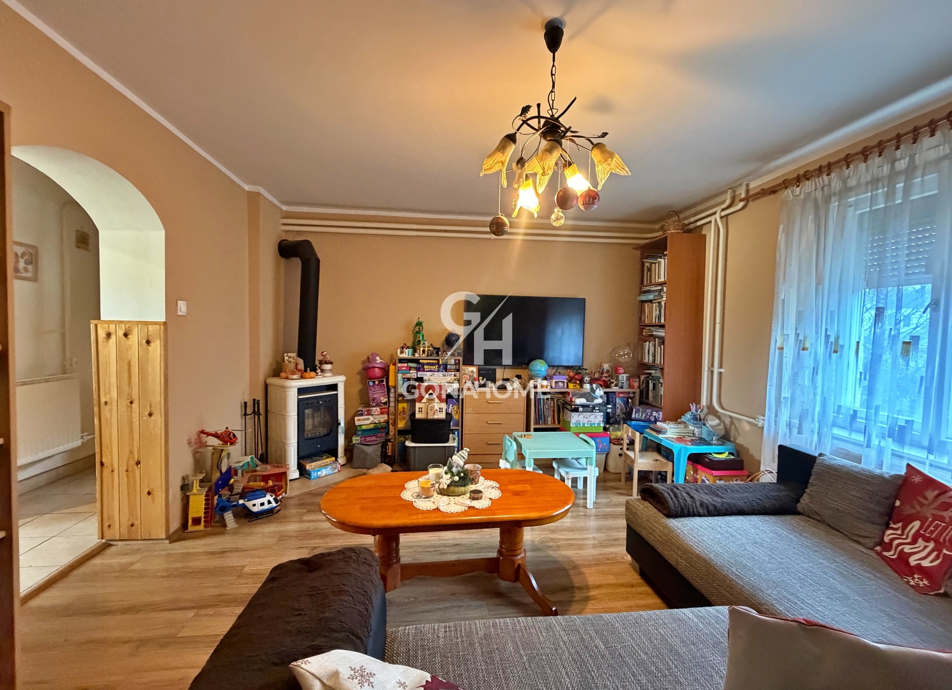 - A fűtést vegyes tüzelésű kazán biztosítja mindkét szinten, radiátoros hőleadással, valamint 3 db hűtő-fűtő klíma és kandalló, melegvizet villanybojler biztosítja.