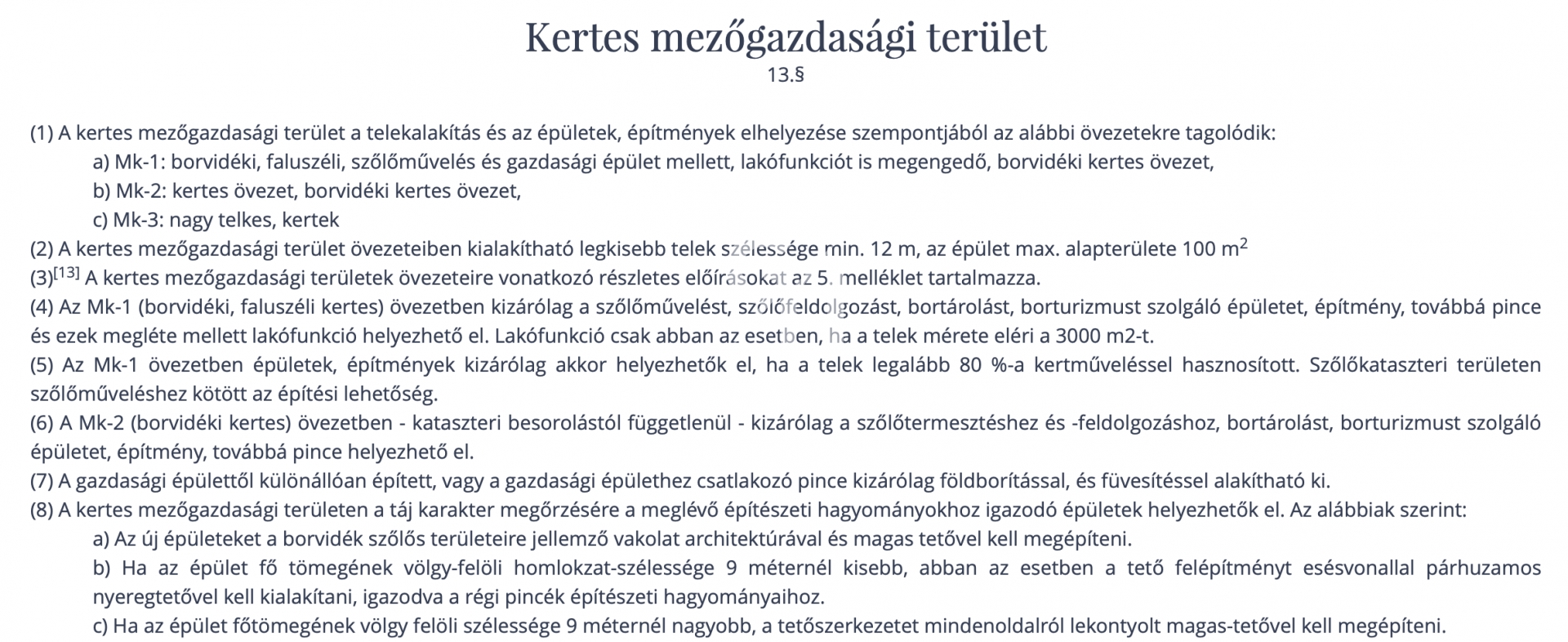 a) Mk-1: borvidéki, faluszéli, szőlőművelés és gazdasági épület mellett, lakófunkciót is megengedő, borvidéki kertes övezet,