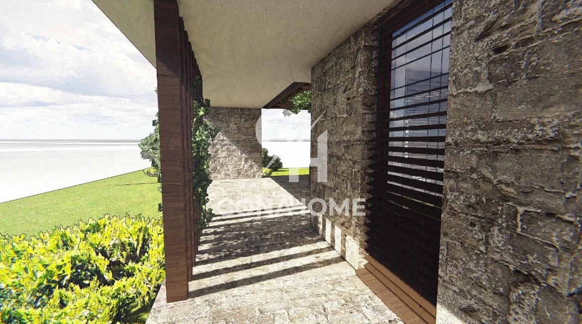 - Exkluzív fedett terasz, lamellás árnyékolóval, alumínium oszlopokkal, korcolt lemezfedéssel – ideális reggeli kávéhoz