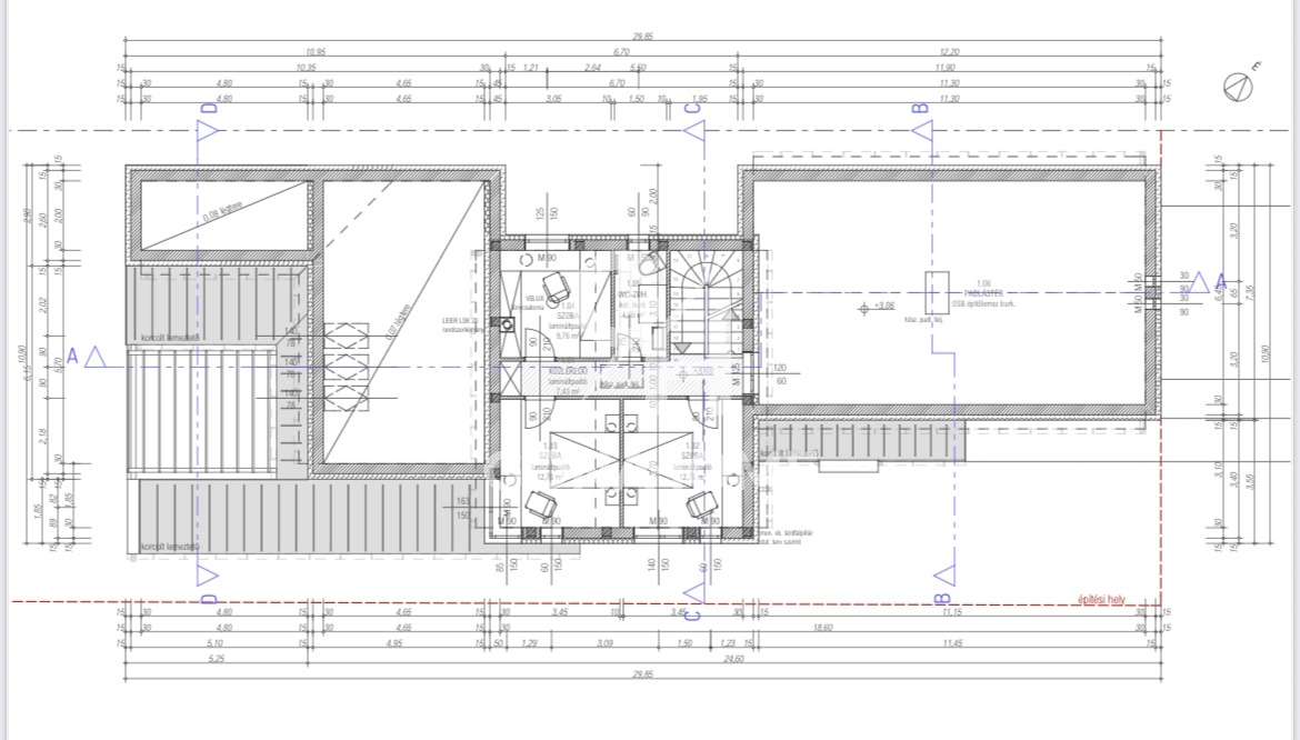 - Szinteltolásos kialakítás, különleges térélmény és egyedi építészeti megoldás