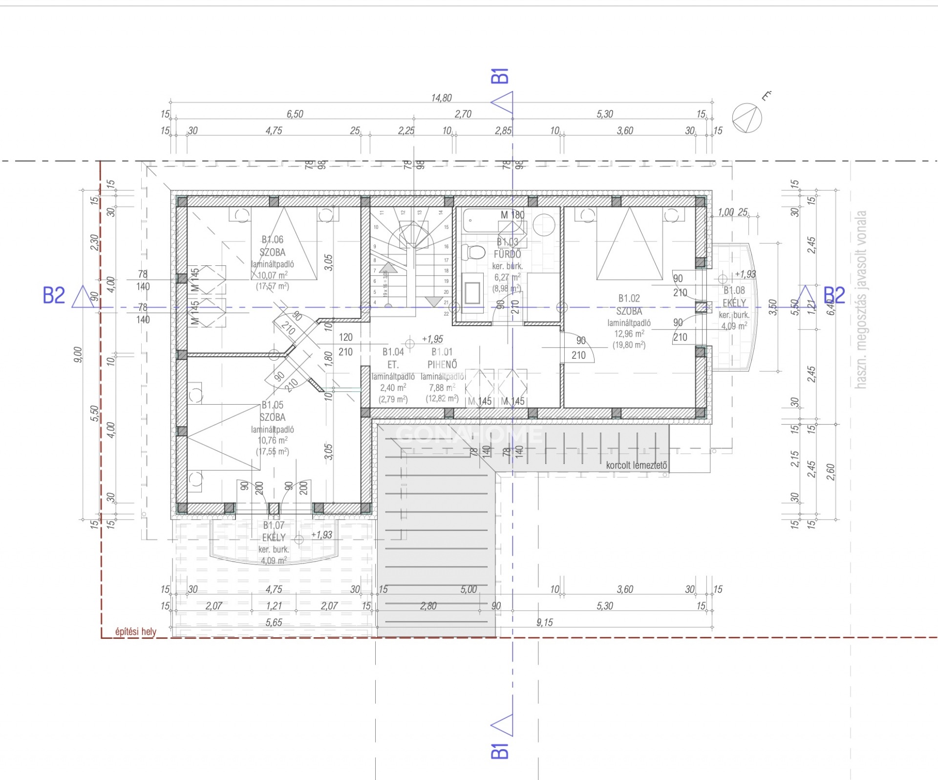 - Erkély: 4,09 m2, korcolt lemezfedéssel