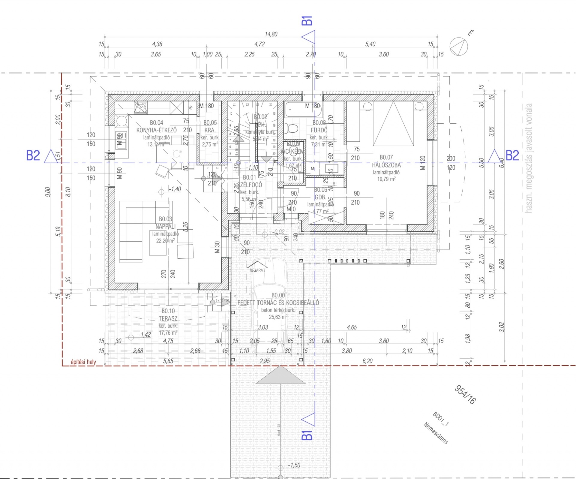 - Tető fedése: TERRÁN ZENIT MARS típusú síkcserép, vörös színben.
