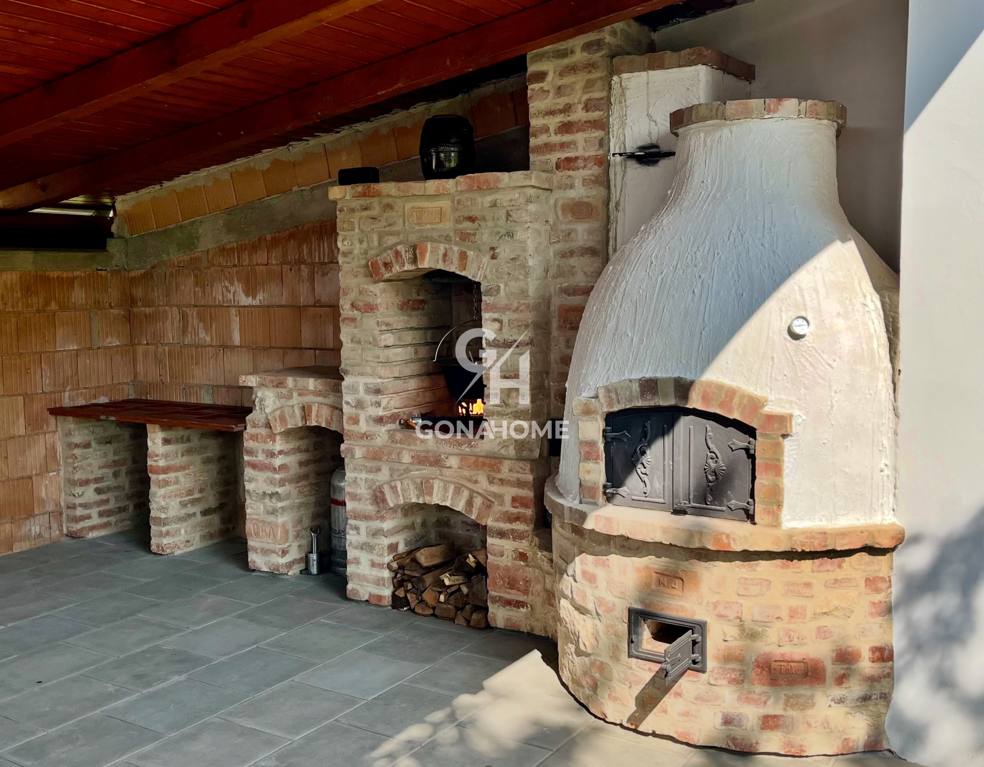– udvarban lemez tároló, lemezgarázs, valamint fedett kiülő kemencével