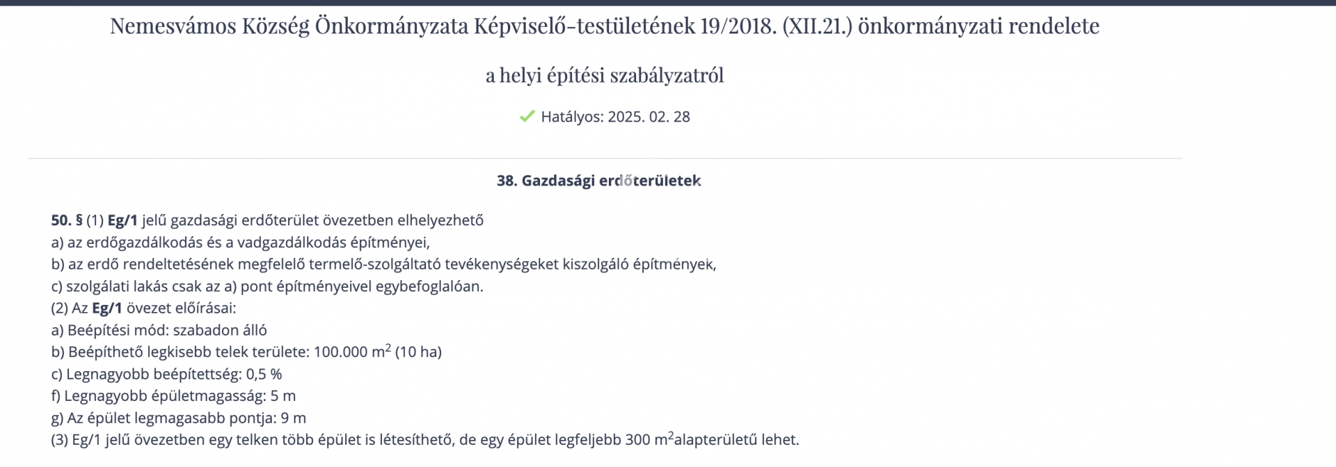 Gazdasági erdőterület (Eg/1 övezet)