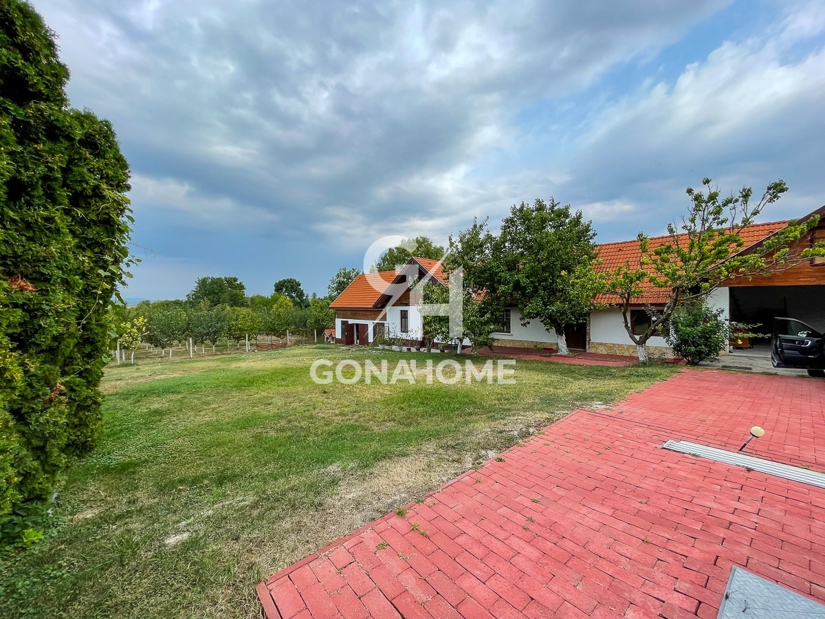 * Melléképületek: dupla garázs, 45 m²-es apartman (2 szoba, konyha, fürdőszoba), hatalmas pajta.