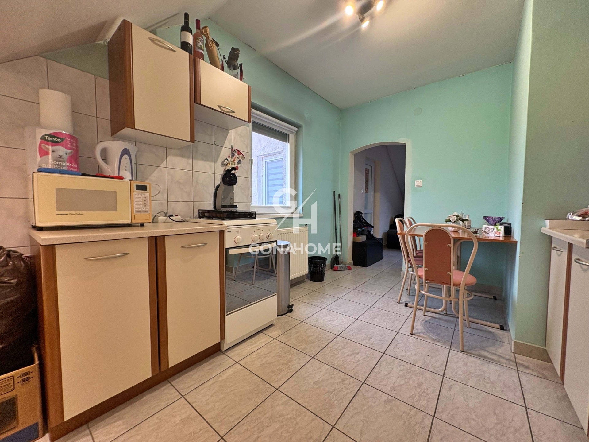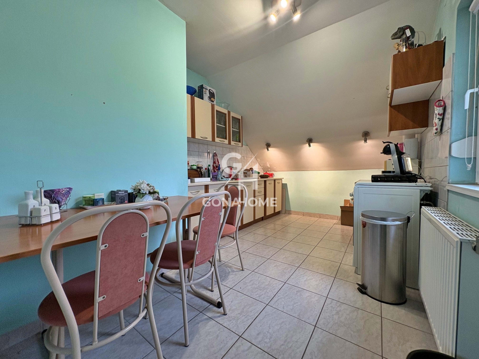 - A két szintes ingatlanba található: 5 egész szoba, 1 fél szoba, közlekedők, 2 konyha, kazánház, 2 fürdőszoba
