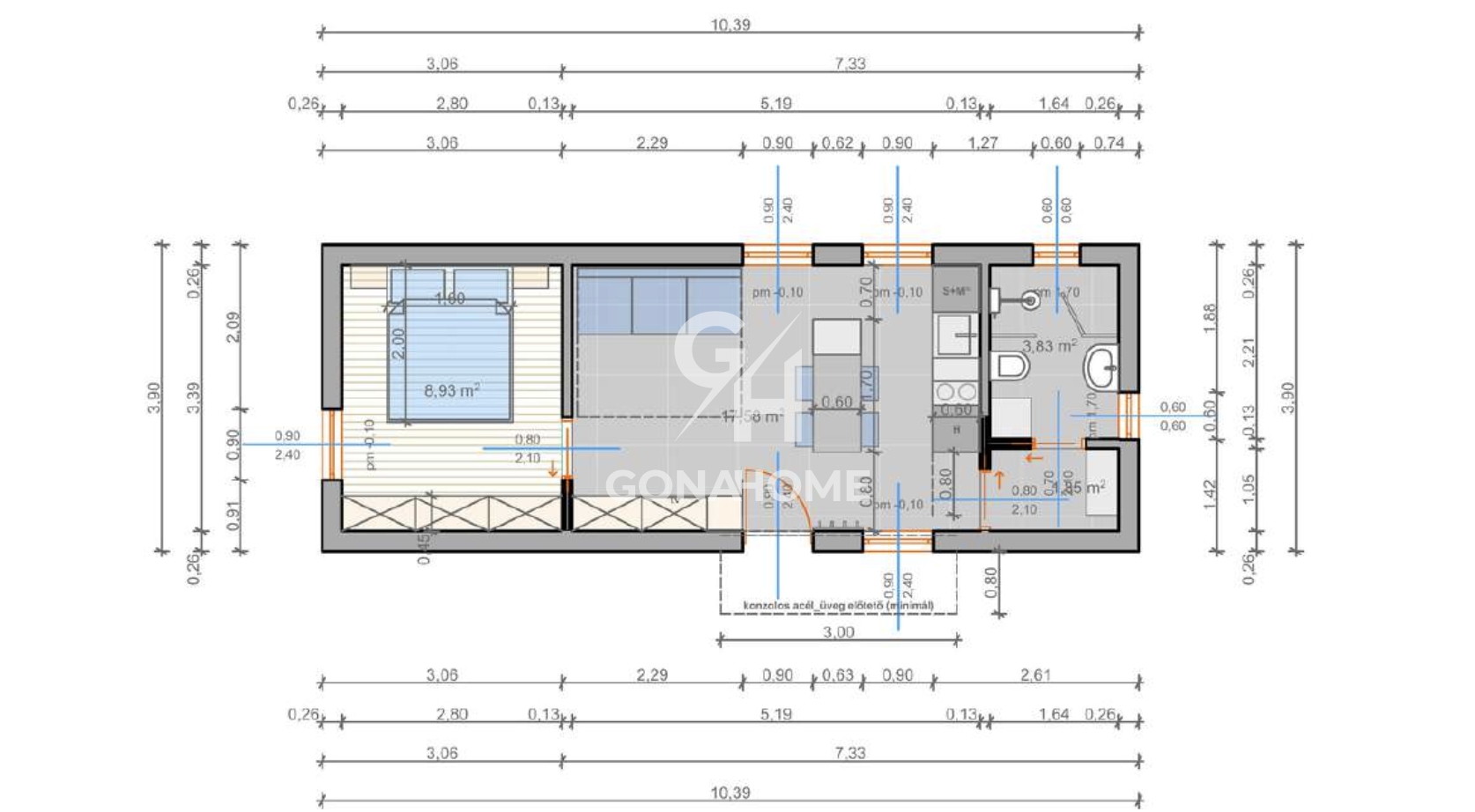 - Szoba: 8,93 m2