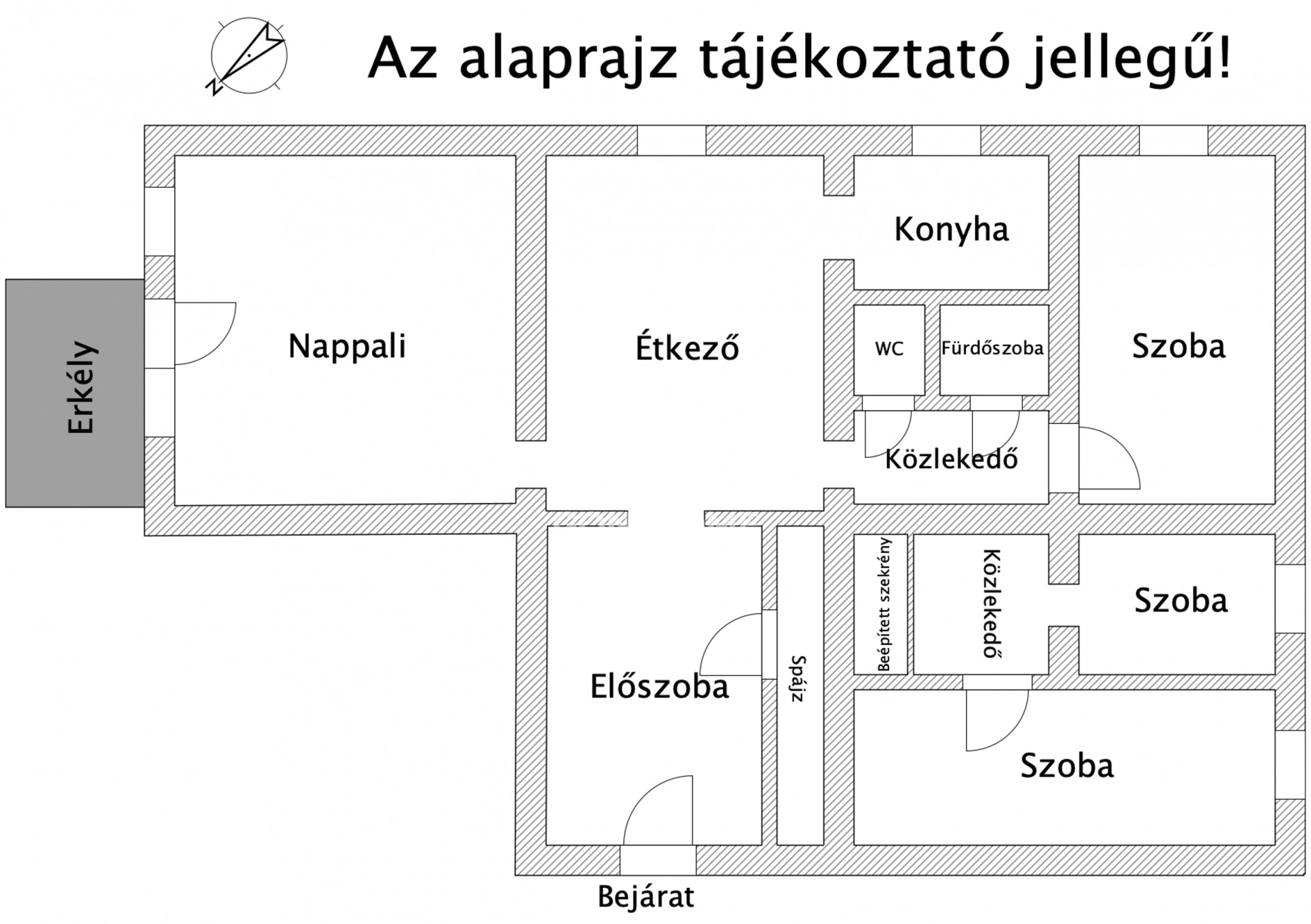 - 3 egész szobából, 1 félszobából, előszoba/étkezőből, konyhából, fürdőszobából, különálló WC-ből és erkélyből áll!
