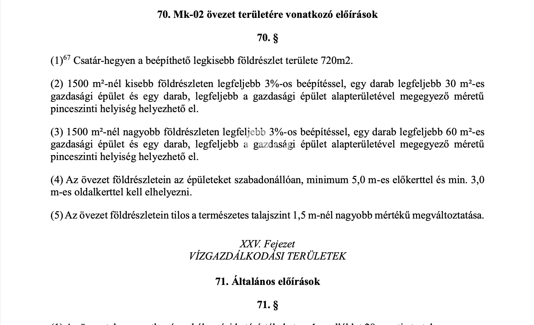 (5) Az övezet földrészletein tilos a természetes talajszint 1,5 m-nél nagyobb mértékú megváltoztatása.