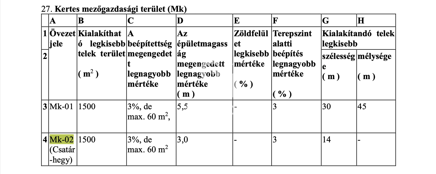 Övezeti besorolása: Mk-02