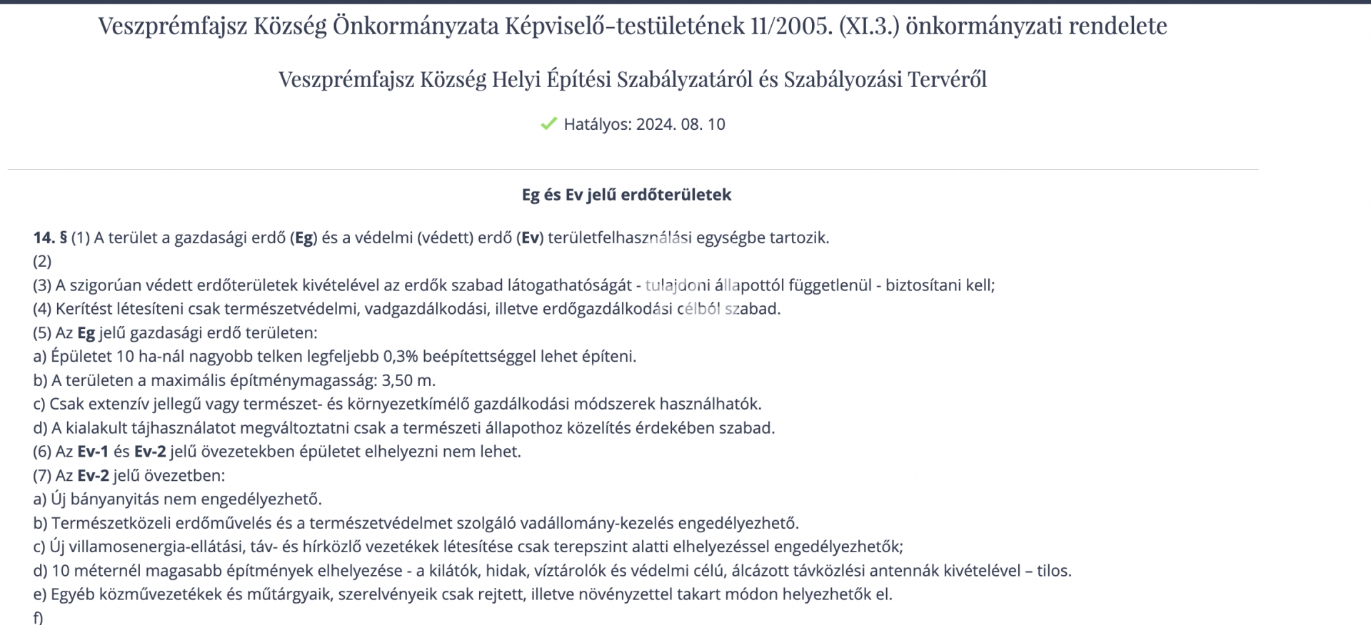 • Övezeti besorolás: Ev-1 (védelmi erdő)
